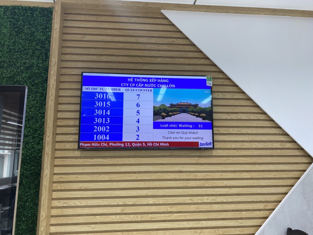 Dự án/ Khách hàng đã triển khai, Khách hàng QMS Hệ thống khác Cấp Nước Chợ Lớn, Q5 TpHCM Posted on 27/02/202315/03/2023 by Davisoft Davisoft Vietnam triển khai hệ thống xếp hàng tự động DaviQmsPro tại Cty CP Cấp Nước Chợ Lớn, Quận 5, Tp Hồ Chí Minh Hệ thống sử dụng DaviQmsPro 4J Xem chi tiết Ủy ban huyện Đam Rông, Lâm Đồng Ủy ban xã Đạ Rsal, Lâm Đồng
