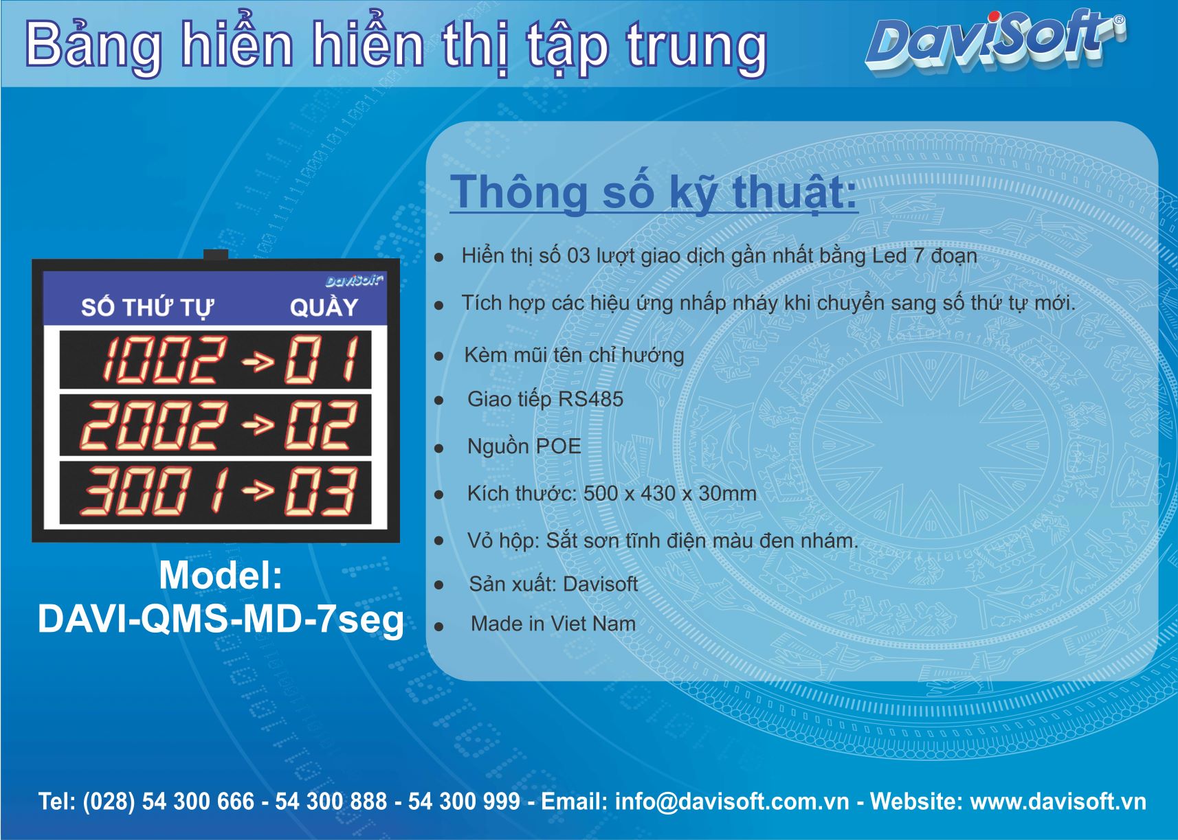 Danh mục: Các bảng hiển thị LED DaviQms, Các mẫu sản phẩm DaviQms Từ khóa: bảng hiển thị tập trung, main display